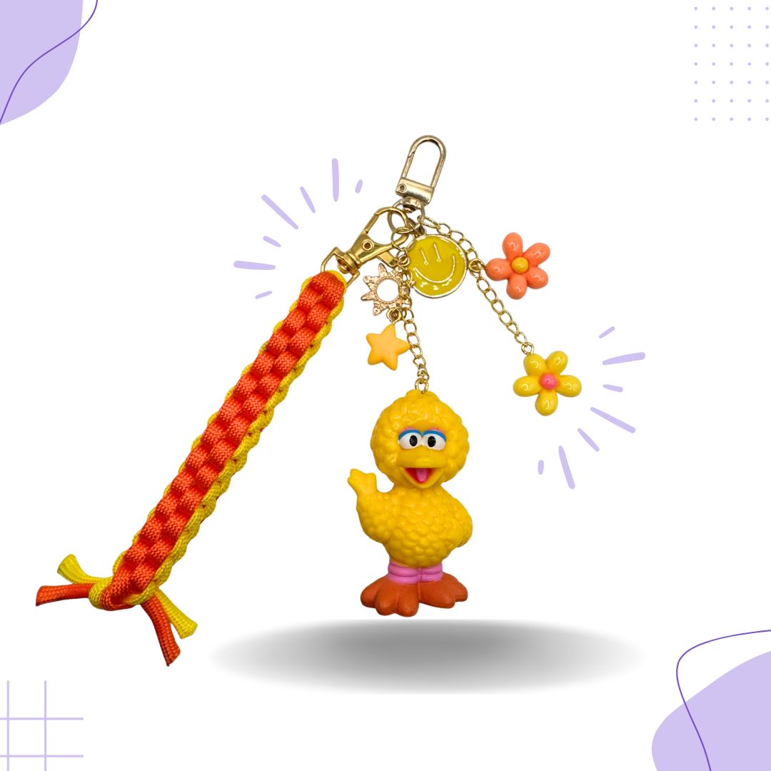 Channel the magic of childhood with this retro curated charm. Featuring a classic Sesame Street-inspired charm. This piece pairs retro charm accents and a handmade retro braided paracord keychain.